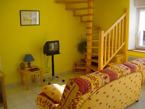 l'étage comprend un lit 2 personnes, une commode et un placard.