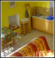 et la possibilité de garer la voiture sous abri. Le coin cuisine